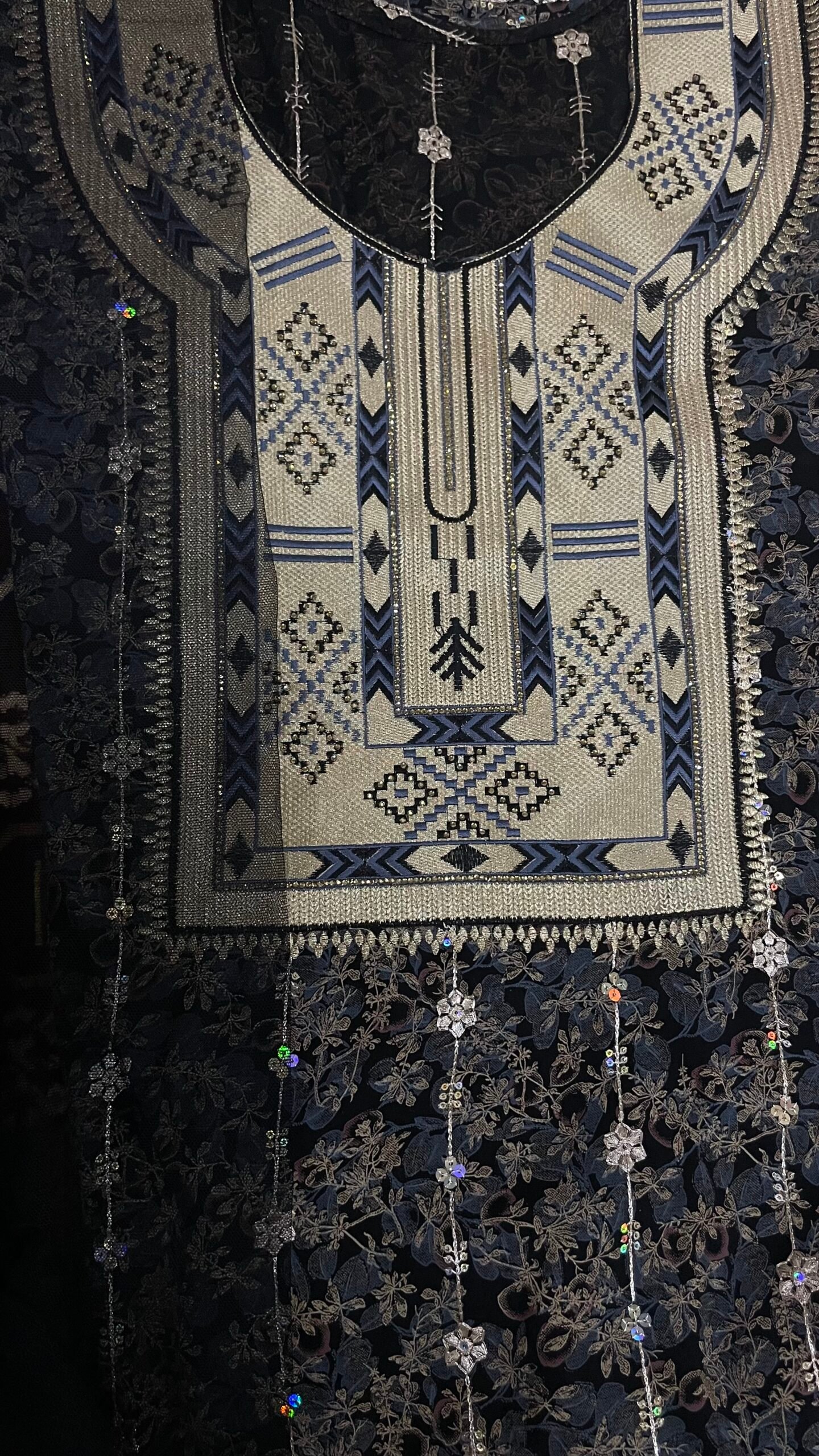 صوري بقماش كريب مشغول بتطريز و فولك مع شبك اسود