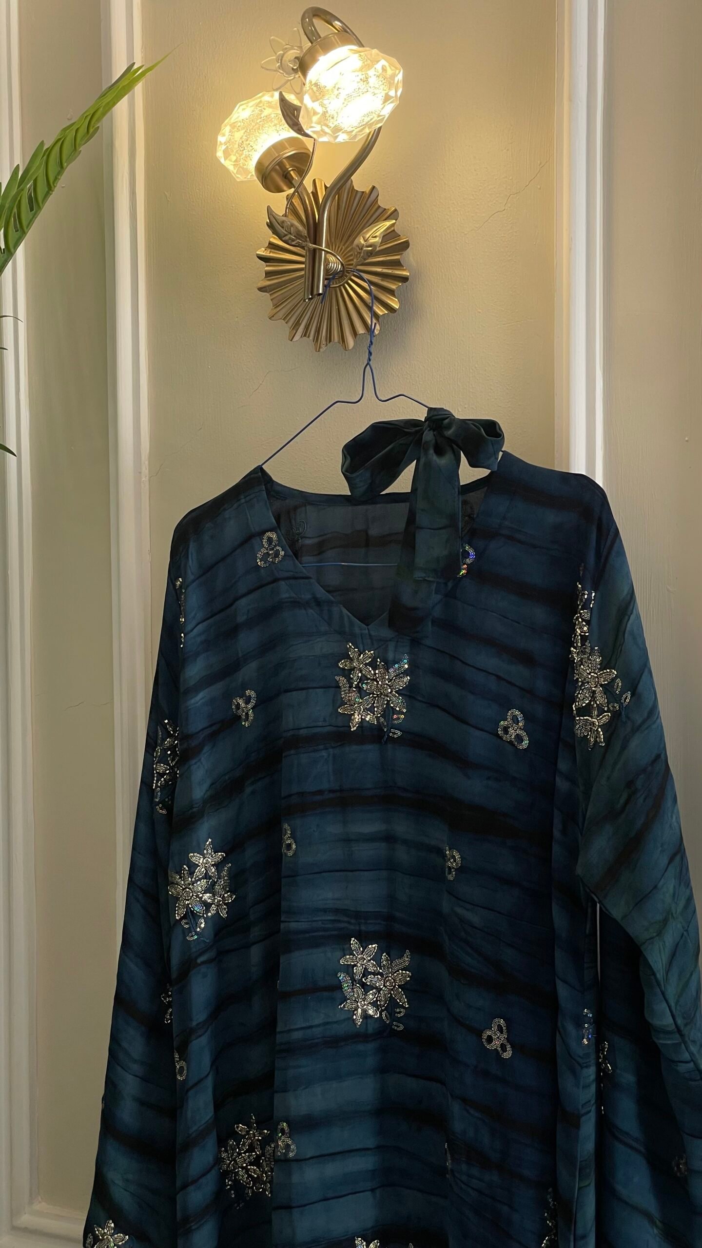 قطعة كريب مشغوله بتطريز و شك منثور
